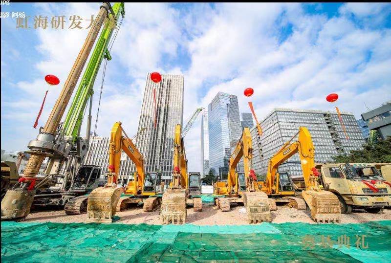 虹海研发大楼基坑土石方工程:项目位于深圳市南山区,我司于2020年12月承接土方挖运工程,总造价1670万元,支护结构形式及开挖深度:单排桩+内支撑支护,挖深约16.6M ,土方总量10万m3。