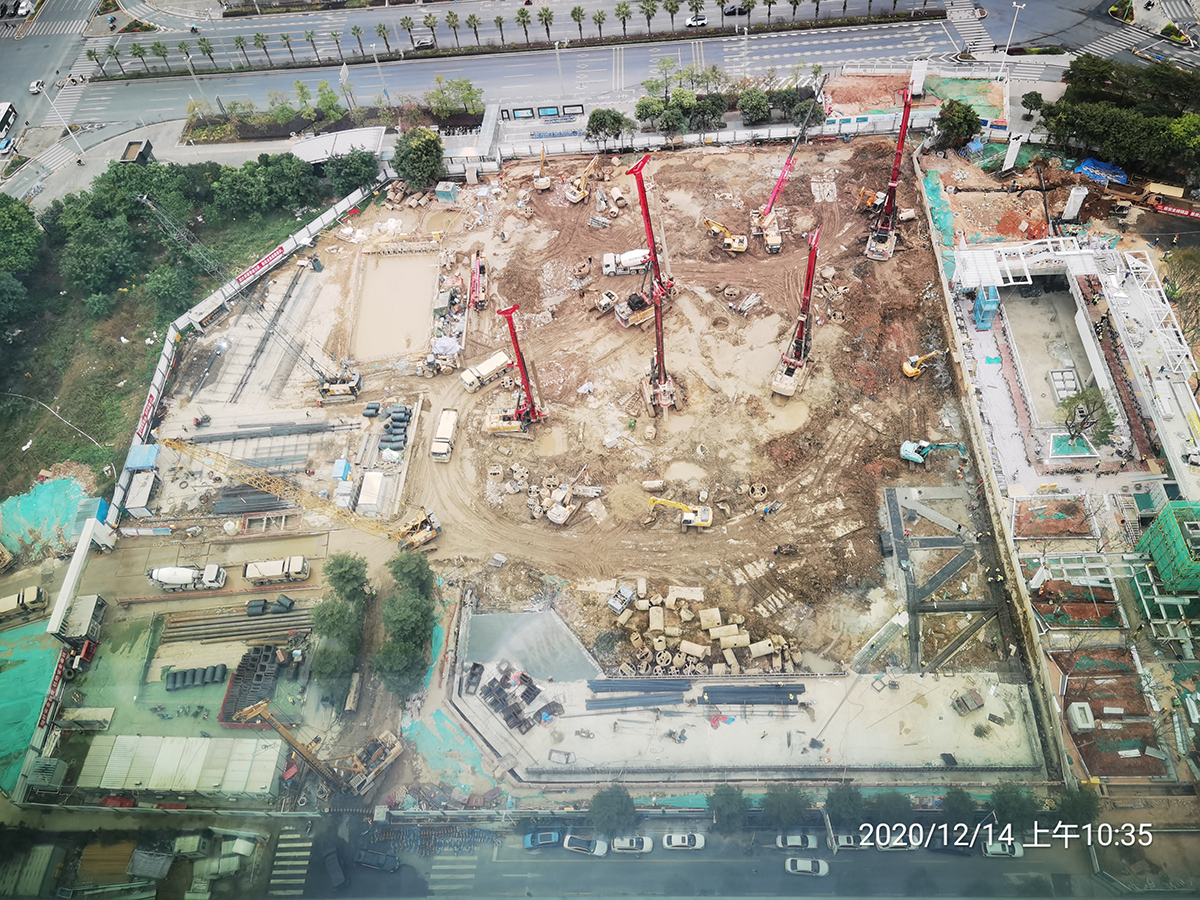 华侨城宝辰大厦项目土石方工程 :项目位于宝安区宝源南路和创业一路交汇处,项目总建筑面基为13.5万平方米,高度为230米的超高层建筑。我司于2020年10月承接土方挖运工程,总造价1900万元,支护结构形式及开挖深度:三道边桁架钢筋混凝土支撑+咬合桩,开挖深度约20M,土方总量15万m3。